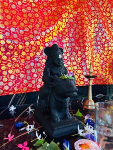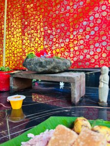 Finally, the auspicious day arrived, the day when the special stone in the cave was discovered to be the deity. The saint who came to the cave 4 months after the beginning of the cave, recognized the presence of Bhairava and the original Dravidian Kali.