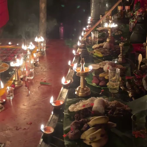 Guruthi Puja, a favorite of Goddess Kali, is held every Tuesday and Friday. All black magic -related evils are removed here with Goddess Kali by the addition of the